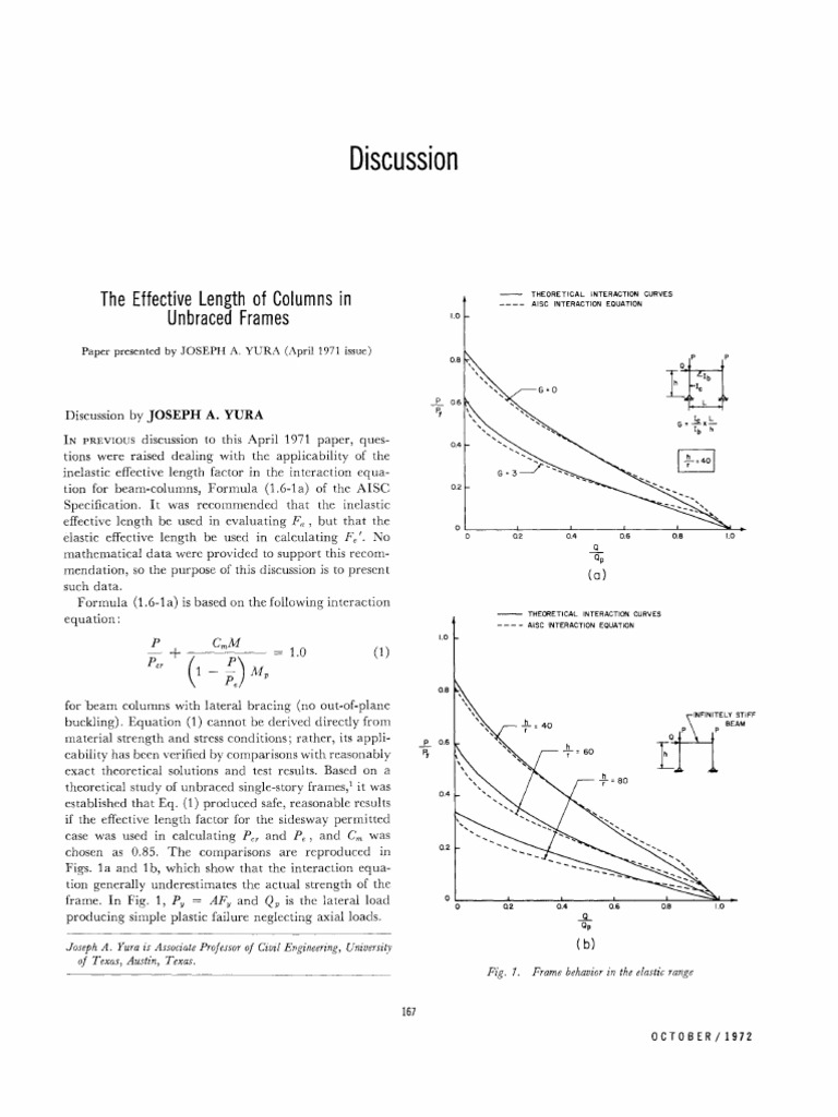 (PDF) Effective Length Factor for Column in Frame with ... from i1.rgstatic.net The effective length when adequate bracing has been designed and installed impacts the load carrying capacity of the column for failure modes such as buckling. The effective length method involves isolating a critical column within a frame and evaluating the rotational and translational stiffness of its end restraints, so that the critical buckling load may be obtained. Fixed at both the ends. The johnson formula is shown as the blue curve, and it corrects for the. The effective length factor is used as a means of relating columns with differing end conditions. This computed strength is influenced by the column effective length factor k, the equivalent uniform bending moment diagram factor c m and the effective the accuracy of these equations as related to the effective length factor of columns in braced frames is investigated and discussed in detail in the. According to table 28 of is code 456:2000, the effective length of the column for different end conditions are shown below The effective length method involves isolating a critical column within a frame and evaluating the rotational and translational stiffness of its end restraints, so that the critical buckling load may be obtained.